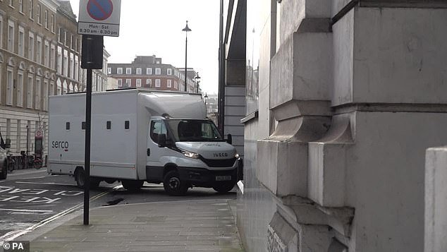 Dziś rano przed rozprawą do Westminster Magistrates’ Court przyjeżdża policyjna furgonetka
