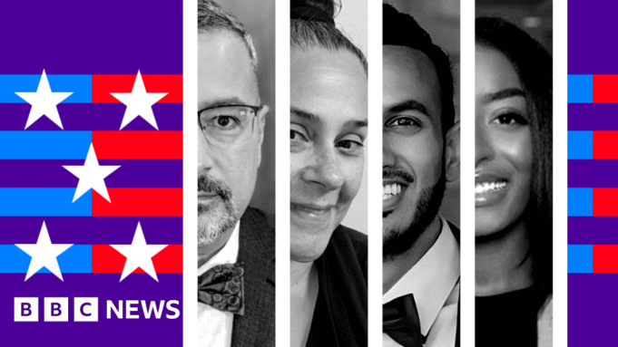 BBC Voter Voices Graphic z czterech wyborcówBBC