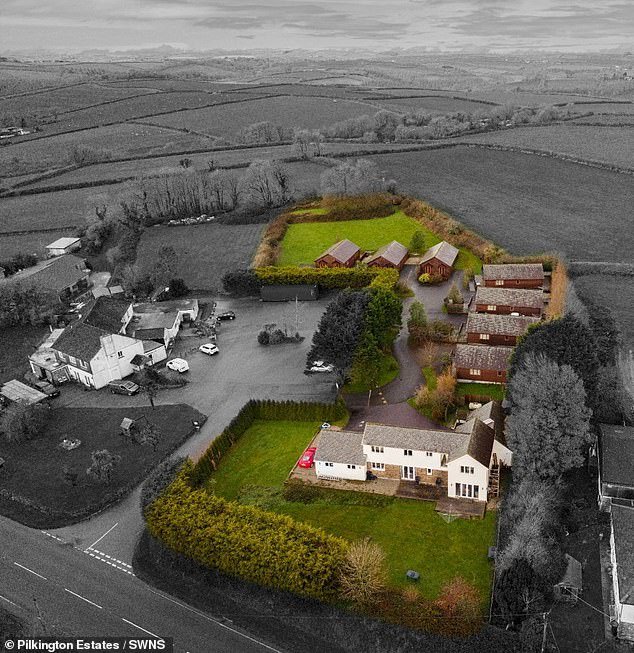 Wystawiono na sprzedaż Tudor Lodges w Kornwalii (w kolorze), składające się z siedmiu bungalowów i jednej dużej, wolnostojącej nieruchomości głównej