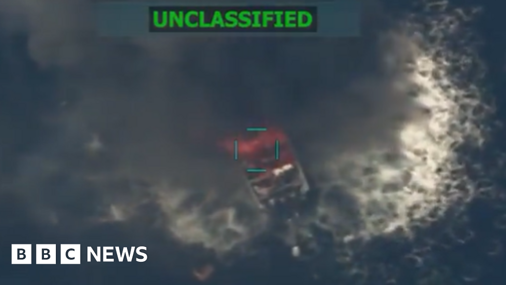 W poście Hegsetha znalazł się film przedstawiający statek zapalający się po uderzeniu amerykańską amunicją.