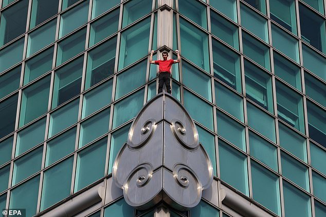 Honnold (40 l.) próbuje zwiększyć skalę Tajwan567-metrowy wieżowiec Taipei 101 – dawniej najwyższy budynek na świecie – w niedzielny poranek w swoim charakterystycznym stylu free solo.