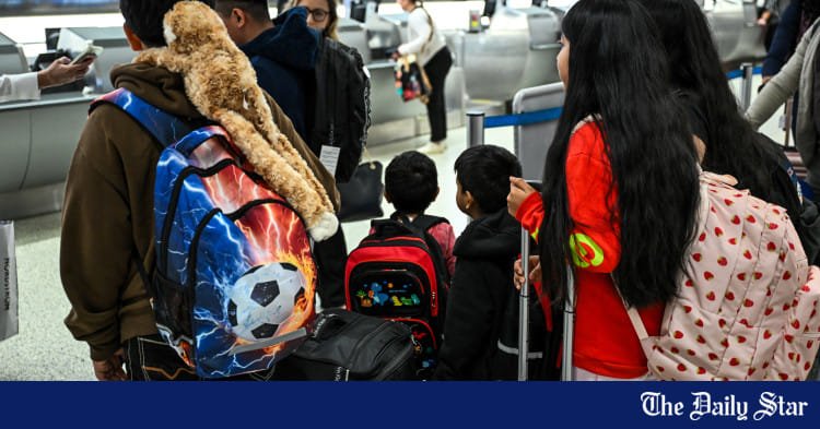 Jedenastoletni obywatel Gwatemali Alexis, trzynastoletni obywatel Gwatemali Enrique, trzyletni obywatel USA Franklin, sześcioletni obywatel USA Garibaldi, jedenastoletni obywatel Gwatemali Mariela i szesnastoletni obywatel Gwatemali Areimy są eskortowani na międzynarodowym lotnisku w Miami przed lotem do Gwatemali, gdzie ponownie spotkają się ze swoimi niedawno deportowanymi rodzicami w Miami na Florydzie, 4 grudnia 2025 r. Fot. AFP