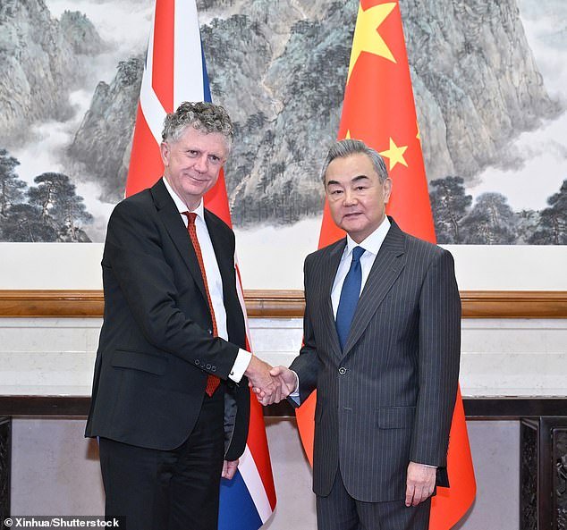 Jonathan Powell, doradca Keira Starmera ds. bezpieczeństwa narodowego, z ministrem spraw zagranicznych Chin Wang Li w Pekinie w lipcu