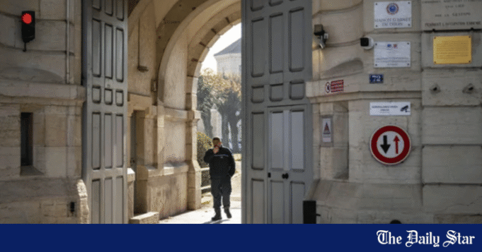 Członek personelu więziennego stoi za drzwiami wejściowymi do więzienia w środkowo-wschodniej Francji w Dijon, 27 listopada 2025 r., skąd w nocy z 26 na 27 listopada 2025 r. uciekło dwóch więźniów. Zdjęcie: AFP