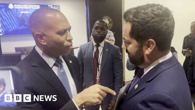Podczas ognistej wymiany zdań na Kapitolu, zarejestrowanej na nagraniu, przywódca Demokratów Hakeem Jeffries powiedział republikaninowi Mike’owi Lawlerowi, aby „trzymał gębę na kłódkę” po tym, jak Lawler skonfrontował się z nim w sprawie zawieszenia działalności rządu. Jeffries nazwał później Lawlera „niepoważną osobą”, ponieważ obaj wymieniali się uwagami na temat polityki i perspektyw wyborczych.