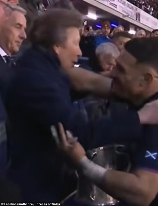 Wirusowe spotkanie Anny w Sześciu Narodów również następuje niedługo po Princess Royal zachwyciła fanów sportu jej pokorną reakcją na niespodziewaną owację podczas starcia Szkocji z Włochami 7 lutego.