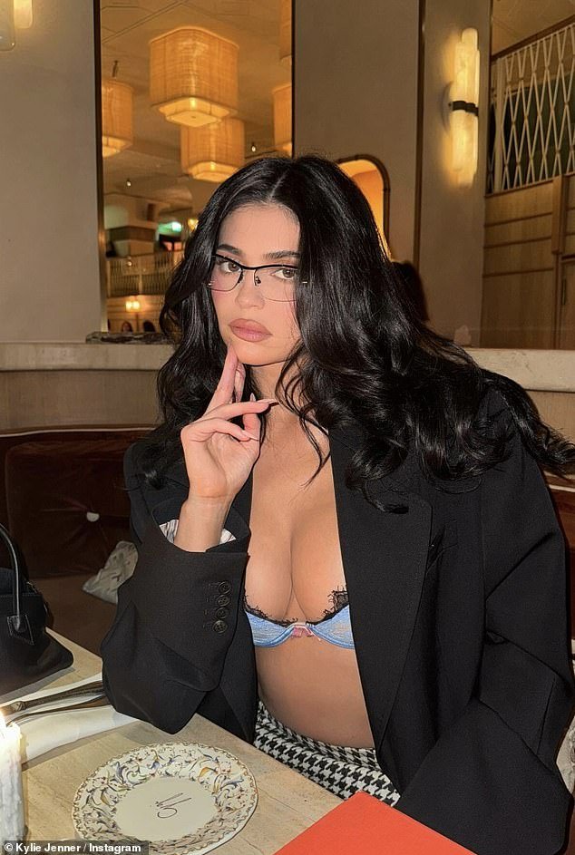 28 -letnia Kylie Jenner wysłała temperatury wznoszące się w niebieskim koronkowym staniku, gdy pozowała do seksownych snapów na Instagramie podczas Paris Fashion Week w sobotę