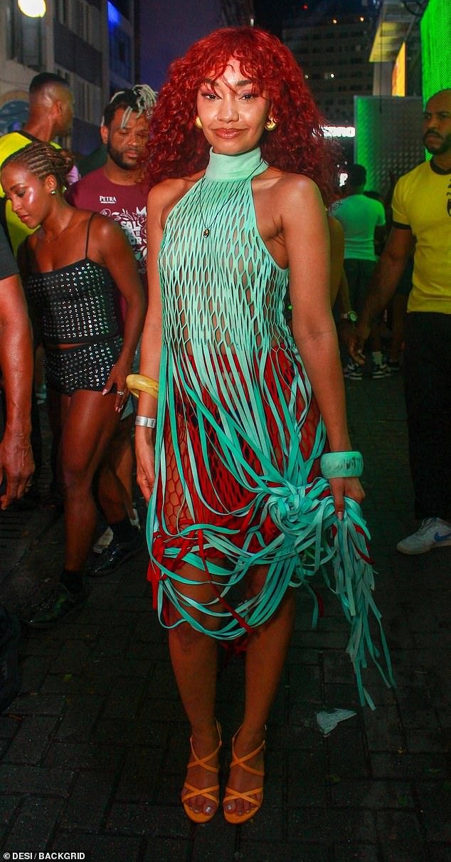 Wydawało się, że Leigh-Anne bez stanika pod przykuwającą wzrok stylizacją, którą połączyła z parą pomarańczowych szpilek z paskami i wyrazistymi bransoletkami.