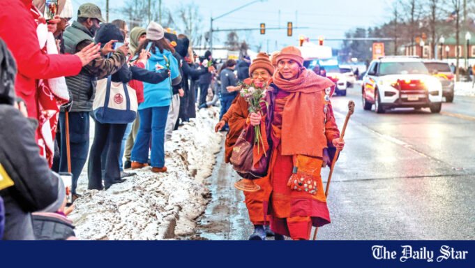 Mnisi rozpoczęli swoją wędrówkę po Teksasie ponad trzy miesiące temu, czasami stawiając czoła mroźnym zimowym temperaturom, czasem bosymi stopami, aby podnieść „świadomość pokoju, miłującej dobroci i współczucia w Ameryce i na świecie”.