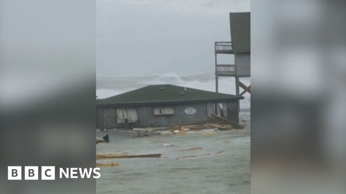Według National Park National Park Service, pięć niezamieszkanych domów na palach wpadło do morza po tym, jak zostali zmęczone przez niebezpieczne fale w Buxton w Karolinie Północnej.