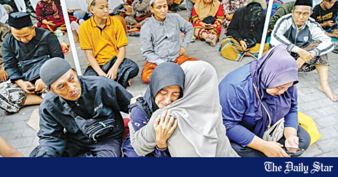 Zrozpaczone rodziny z niepokojem czekały w pobliżu strony na wiadomości o swoich bliskich. Wielu wybuchnęło łzami po usłyszeniu, że nie było oznak życia, a jedna kobieta zemdlała, widzieli dziennikarze AFP.
