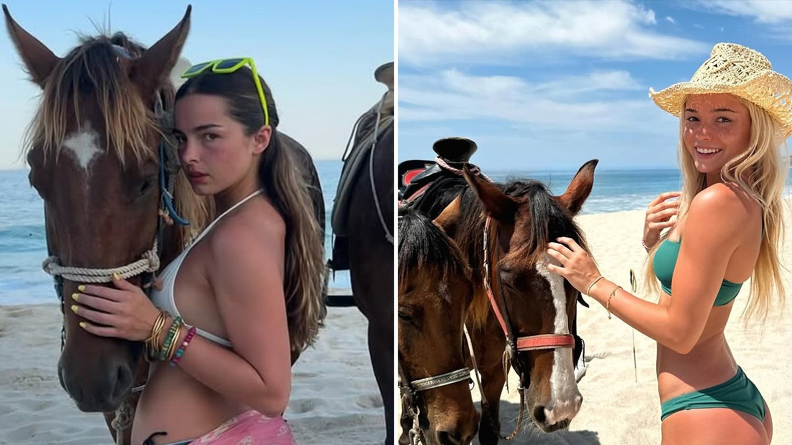 I oczywiście zostaw to Amelia Grey drażnić obserwujących w rozpalonym do czerwoności bikini, pozując z ogierem za nią…