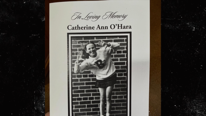 W broszurze pogrzebowej Catherine znajdowało się jej stare zdjęcie, najwyraźniej z czasów, gdy była w szkole średniej… a Kelly podpisała post: „Spoczywaj w pokoju, kochana Catherine 💔”.