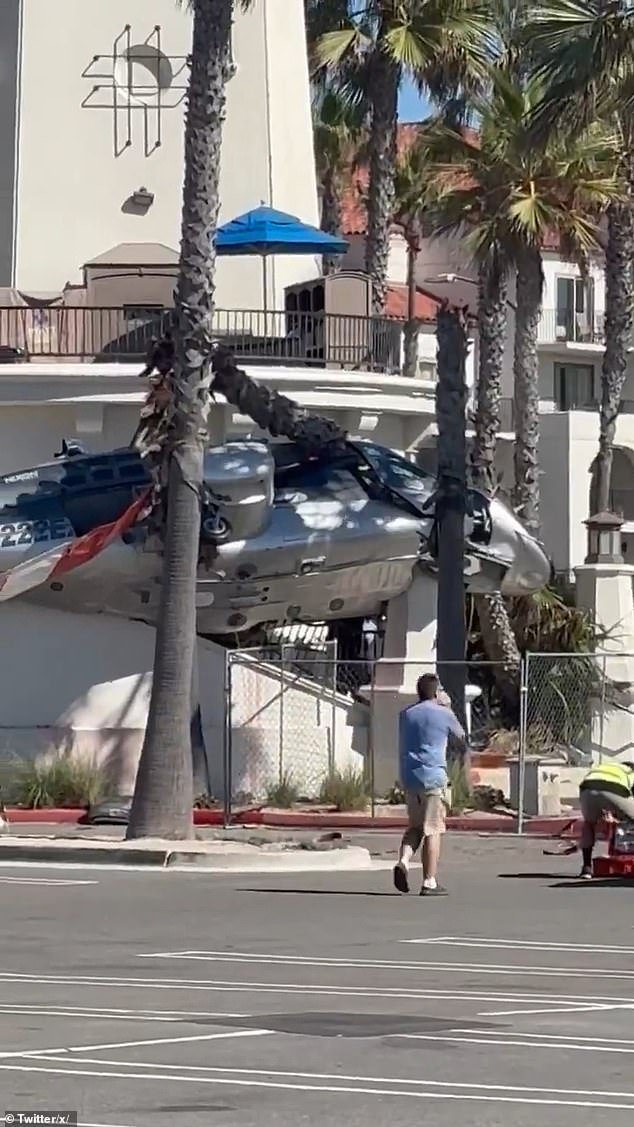 Policja w Huntington Beach powiedziała, że ​​dwie osoby na pokładzie helikoptera zostały bezpiecznie wydobyte z wraku, choć ich stan pozostaje nieznany.