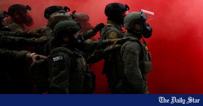 Przywódcy państwowi i lokalni demokratyczni zakwestionowali te roszczenia i oskarżyli Trumpa o naruszenie długotrwałych przepisów i norm amerykańskich przeciwko użyciu wojska do krajowych organów ścigania.