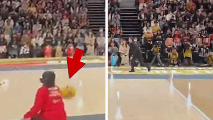Na szczęście potrącona kobieta wyszła z tego bez szwanku. Sądząc po jego reakcji, można by pomyśleć, że uderzył ją kulą do kręgli.