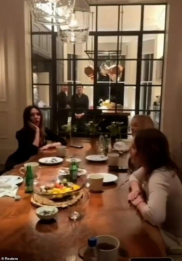 Podczas gdy panie śpiewały, syn Victorii, Cruz, brzdąkał na gitarze, a jego dziewczyna Jackie Apostel siedziała przy stole przez ten kultowy moment.