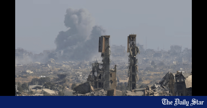 Smoke wznosi się po wybuchach w mieście Gazy po tym, jak Hamas zgodził się zwolnić zakładników i zaakceptować inne warunki w amerykańskim planie zakończenia wojny, jak widać z Central Gaza Strip 4 października 2025 r. Reuters/Dawoud Abu Alkas