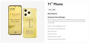 Trump Mobile powiedział, że złoty smartfon o nazwie T1 pojawi się w sierpniu. Jednak data ta minęła bez zwolnienia. Firma nie ma jeszcze żadnej informacji o tym, kiedy ten telefon dotrze.