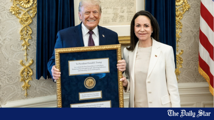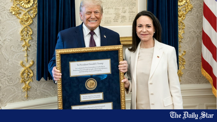 Przywódczyni wenezuelskiej opozycji Maria Corina Machado wręczyła w czwartek medal Pokojowej Nagrody Nobla prezydentowi USA Donaldowi Trumpowi podczas spotkania w Białym Domu, próbując wpłynąć na jego wysiłki na rzecz kształtowania politycznej przyszłości jej kraju.