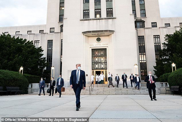 Trump opuszcza Narodowe Wojskowe Centrum Medyczne im. Waltera Reeda w Bethesda w stanie Maryland, poniedziałek, 5 października 2020 r., w drodze do Białego Domu