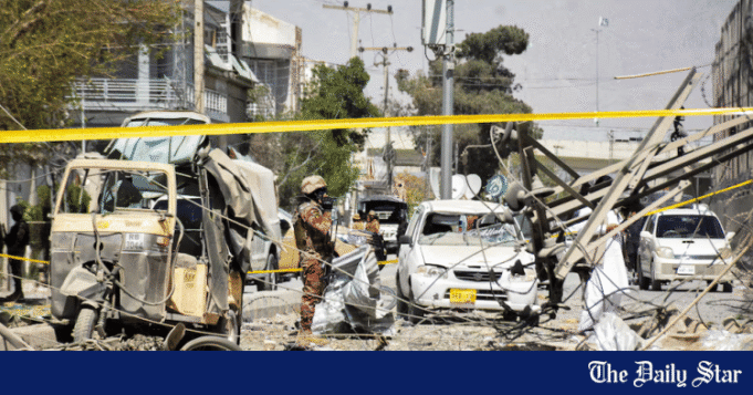 Bugti potwierdził, że zamachowiec -samobójca prowadzi pickup, podczas gdy siły bezpieczeństwa zabiły czterech dodatkowych atakujących podczas starcia.