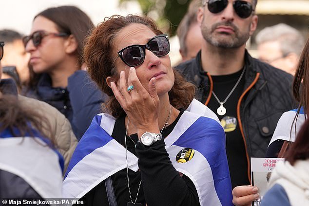 Przemówienie wideo z brytyjskiej osoby, która przeżyła zakładników Emily Damari, zostało odtworzone dla tłumu. 28-latek spędził 471 dni w niewoli.