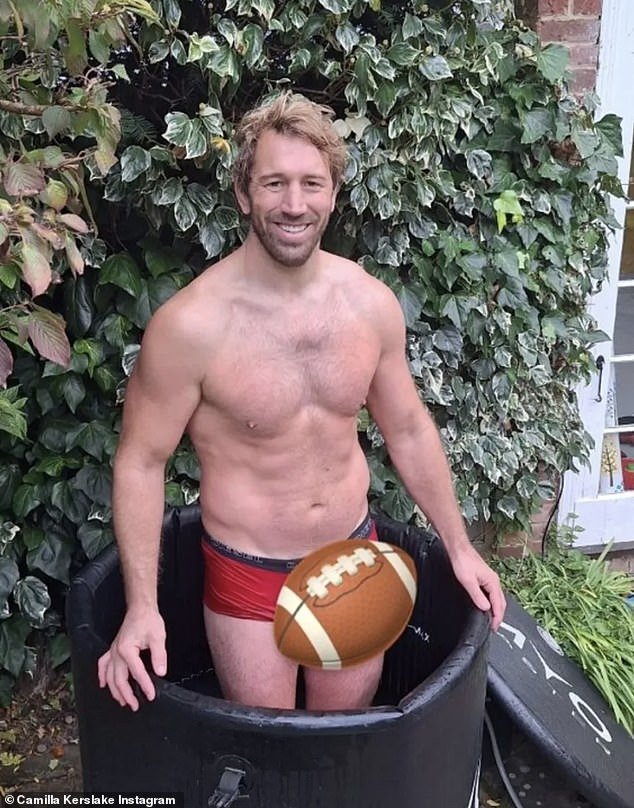 Robiąc jak najlepiej, aby widzowie głosowali na Chrisa, Camilla pokryła swoją skromność gigantycznym emoji piłki rugby i napisała: „Sekiny wyglądają dobrze na ciebie”.