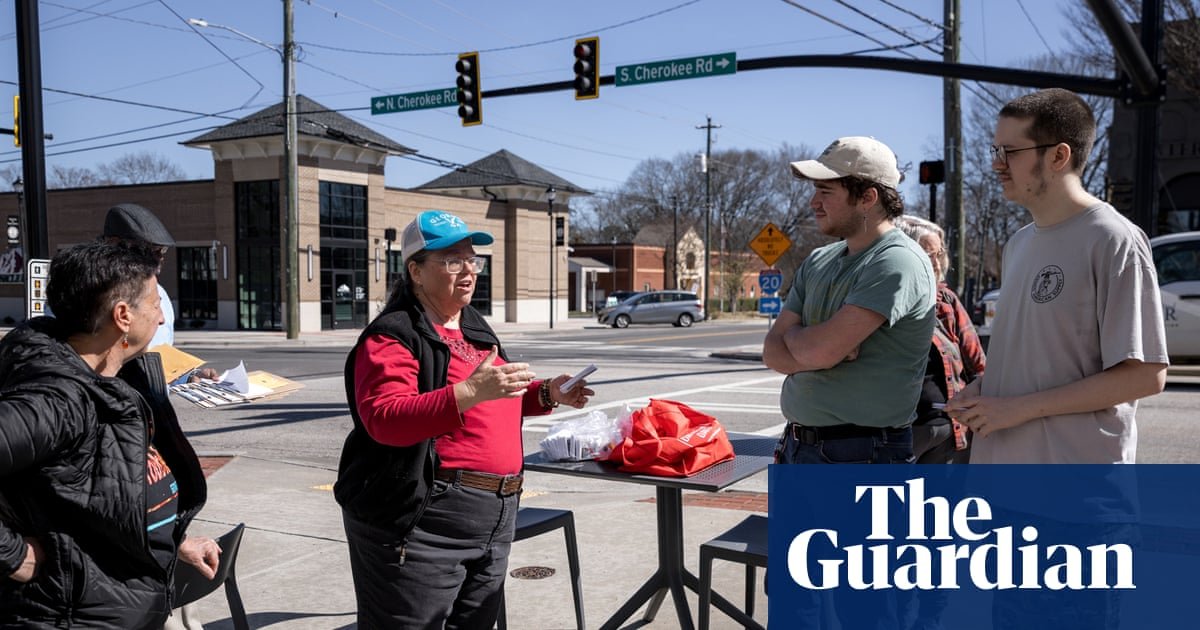 Grupa akwizytorów chce poinformować mieszkańców Social Circle o niedawno ogłoszonym ośrodku holdingowym ICE w pobliżu centrum Social Circle w stanie Georgia. Zdjęcie: Dustin Chambers/The Guardian