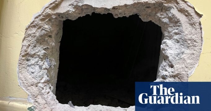 Powiedział, że śledczy dokonali przeglądu materiału do kamery bezpieczeństwa, które pokazują podejrzanych wchodzących do sklepu z dużej dziury, którą wywiercili z nieruchomości.