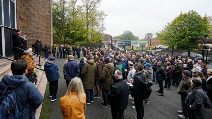 Ludzie zebrali się przed kongregacją hebrajską Heaton Park w Crumpsall o godzinie 9:30, w czasie atak w ubiegły czwartekmodlić się i opłakiwać ofiary.