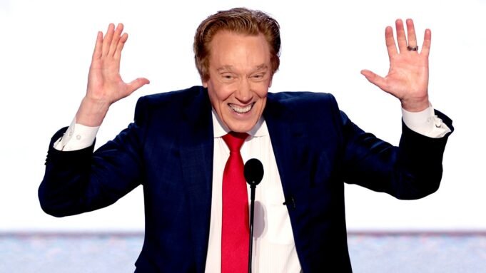 Perry Johnson, były kandydat Partii Republikańskiej na gubernatora stanu Michigan, przemawia podczas Narodowej Konwencji Republikanów (RNC) na Forum Fiserv w Milwaukee w stanie Wisconsin, wtorek, 16 lipca 2024 r. (Eva Marie Uzcategui/Bloomberg za pośrednictwem Getty Images)
