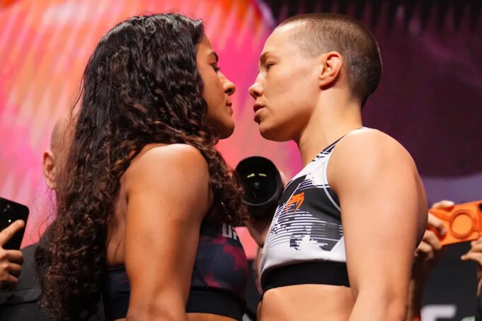 Namajunas (14-7), dwukrotna mistrzyni wagi słomkowej, została wystawiona na próbę po przejściu do kategorii 125 funtów. Jej bilans w swojej nowej kategorii wagowej wynosi 3-2, po zwycięstwach nad Mirandą Maverick, Tracy Cortez i Amandą Ribas oraz porażkach z czołowymi zawodniczkami Erin Blanchfield i Manon Fiorot. „Thug Rose” ma na celu wykolejenie pociągu szumu Silvy i zorganizowanie walki z inną przyszłą członkinią Galerii Sław UFC Valentiną Szewczenko.