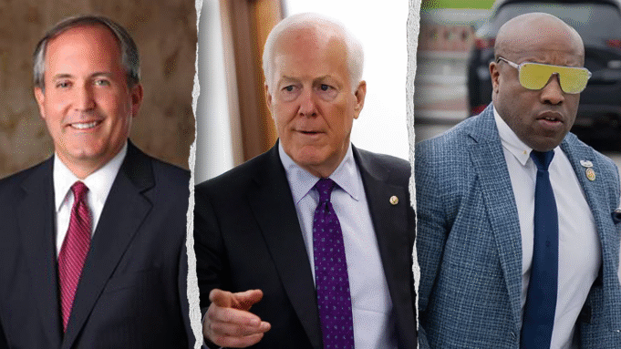 Po lewej: prokurator generalny Teksasu Ken Paxton. W środku: senator John Cornyn, Teksas. Po prawej: poseł Wesley Hunt, Teksas. (Oficjalna strona internetowa prokuratora generalnego Teksasu Kena Paxtona; Kevina Dietsch/Getty; Billa Clarka/CQ-Roll Call, Inc za pośrednictwem Getty Images)