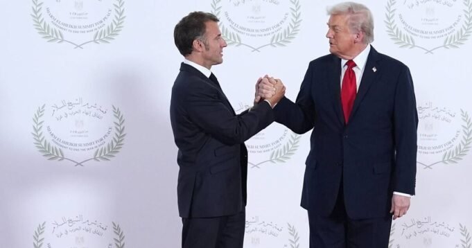 Wydawało się, że prezydent Donald Trump i prezydent Francji Emmanuel Macron prowadzą prywatną rozmowę bitwa słowna w poniedziałek podczas napiętego, gwałtownego uścisku dłoni na szczycie w Egipcie, którego celem było zakończenie konfliktu Izrael–Hamas konflikt.