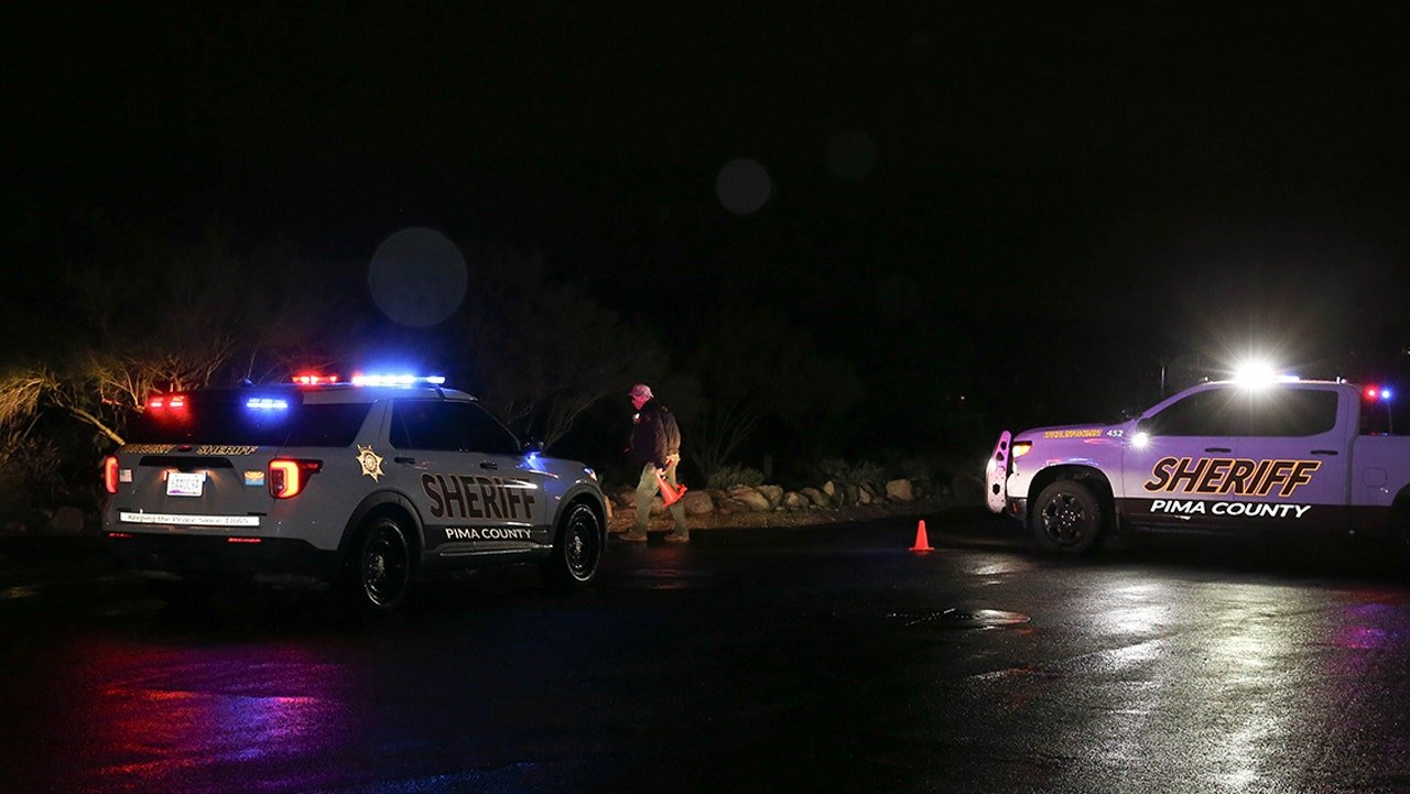 Biuro szeryfa hrabstwa Pima prowadzi działania organów ścigania na skrzyżowaniu Camino de Michael i East Orange Grove Road w Tucson w Arizonie. (DWS dla Fox News Digital)