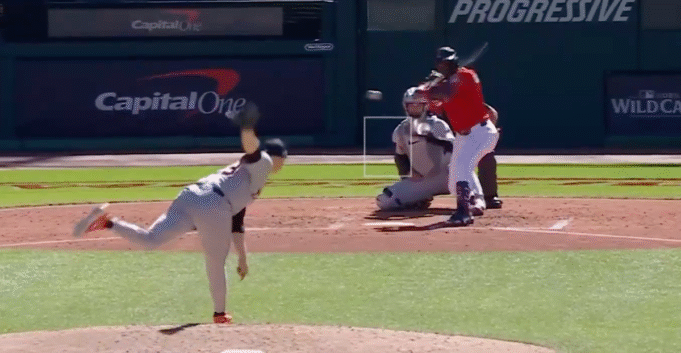 Na dole czwartej rundy we wtorek dzikiej gry karcianej między Tygrysami i Indianami z Cleveland, pomocnik Cleveland, Angel Martínez, wbił się w pudełko pałkarza, aby spróbować zdobyć lewy. Z liczbą 0-2 Skubal wybierał jedną z tych czterech szewów w strefie w strefie, podnosząc się z prędkością 100 km / h.