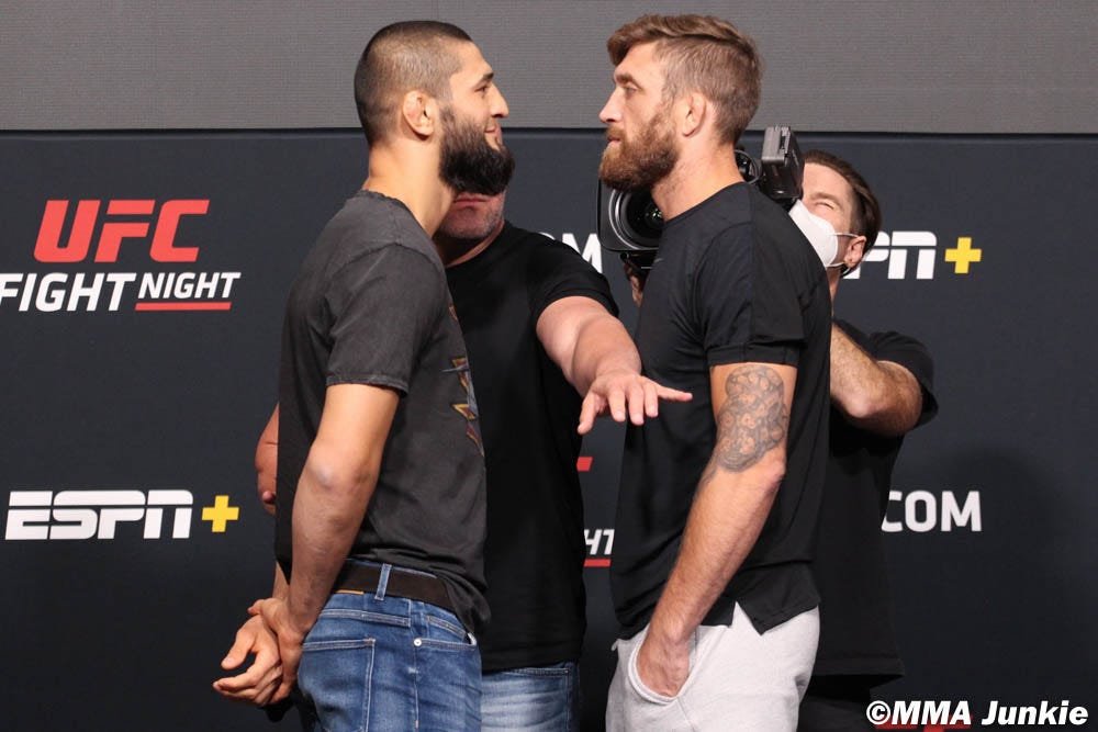 „Słuchaj, nie mam nic przeciwko Khamzatowi. Walczyliśmy; to już koniec. Świetnie się spisał. Ten koleś to właściwy człowiek. Z całym szacunkiem” – powiedział Meerschaert Casualowe MMA. „Ale pamiętam, że spotkaliśmy się na korytarzu – to było podczas pandemii. Widzimy go na korytarzu, byłem ja i Brendan Allen, a potem on i jego trenerzy. Podchodzi do mnie i jakby wszedł mi w twarz i zaczęliśmy gadać o bzdurach w tę i z powrotem. To było jak najgłupsza rozmowa, jak wiesz, kiedy dwóch facetów widzi się i próbujemy powiedzieć: „O tak? Tak? Chcesz?” Na przykład oboje jesteśmy – nie wiem dokładnie, co on mówi, prawdopodobnie powiedziałem jakieś głupie bzdury, ale oboje po prostu… on stał się agresywny, a ja pomyślałem: „Dla kogo to jest?”