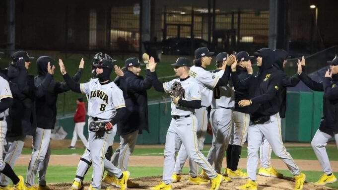 Hawkeyes wypili pięć w pierwszych siedmiu spacerach i błąd. Nie strzelili ponownie do piątej ramy, gdy Junior Gable Mitchell uderzył w singiel 2 RBI, a Miles Transfer Miles Risley uderzył w 2 RBI podwójny.