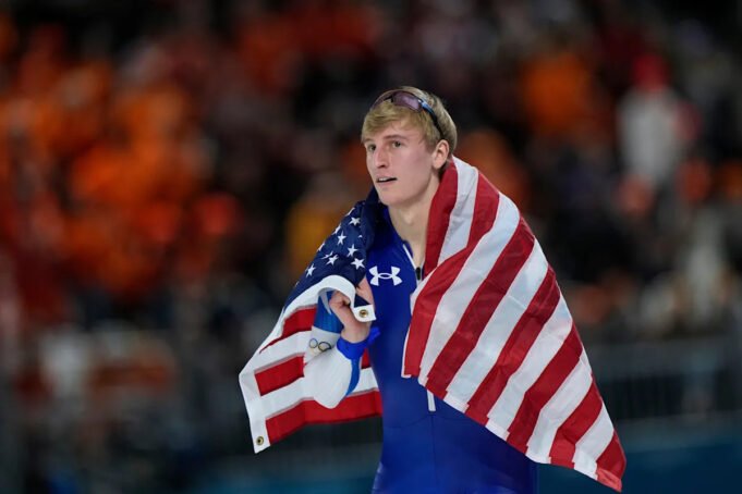 21-latek z Wisconsin schodzi z boiska zwycięstwo w środowym biegu na 1000pierwsza z jego czterech indywidualnych konkurencji na Zimowych Igrzyskach 2026. Jest uważany pretendentem do złota we wszystkich czterech. Rekord mężczyzn w zakresie największej liczby tytułów w łyżwiarstwie szybkim na jednych igrzyskach olimpijskich to pięć tytułów zdobytych przez Erica Heidena w Lake Placid w 1980 r. — który był także ostatnim człowiekiem, który wygrał biegi na 500 i 1000 metrów na tych samych igrzyskach.