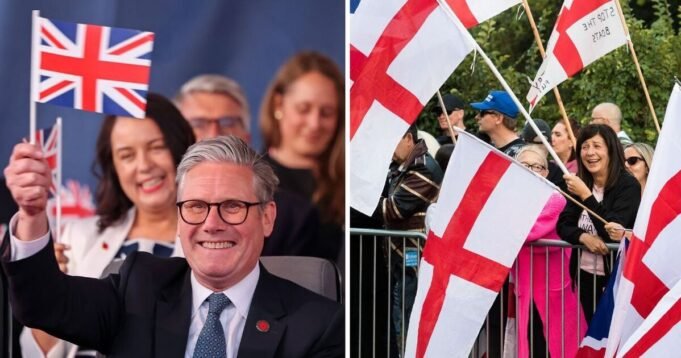 Podczas ostatnich protestów przeciw migrantom w Wielkiej Brytanii niektórzy widzieli noszenie lub noszenie flagi Unii i flagi św. Jerzego.