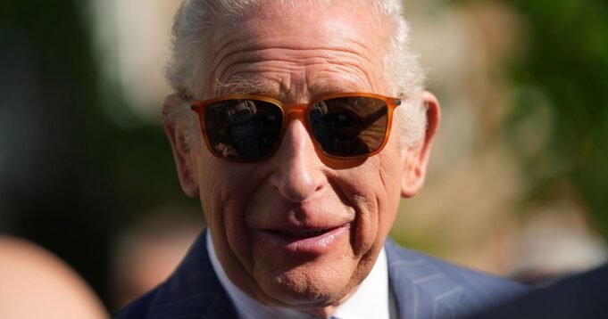 Odwracając się, król, który chronił oczy przed jesiennym słońcem z parą brązowych okularów przeciwsłonecznych, uśmiechnął się, gdy żartował z innymi gościami: „Nie wsuwaj jej z powrotem do mojego boksowanego żywopłotu”.