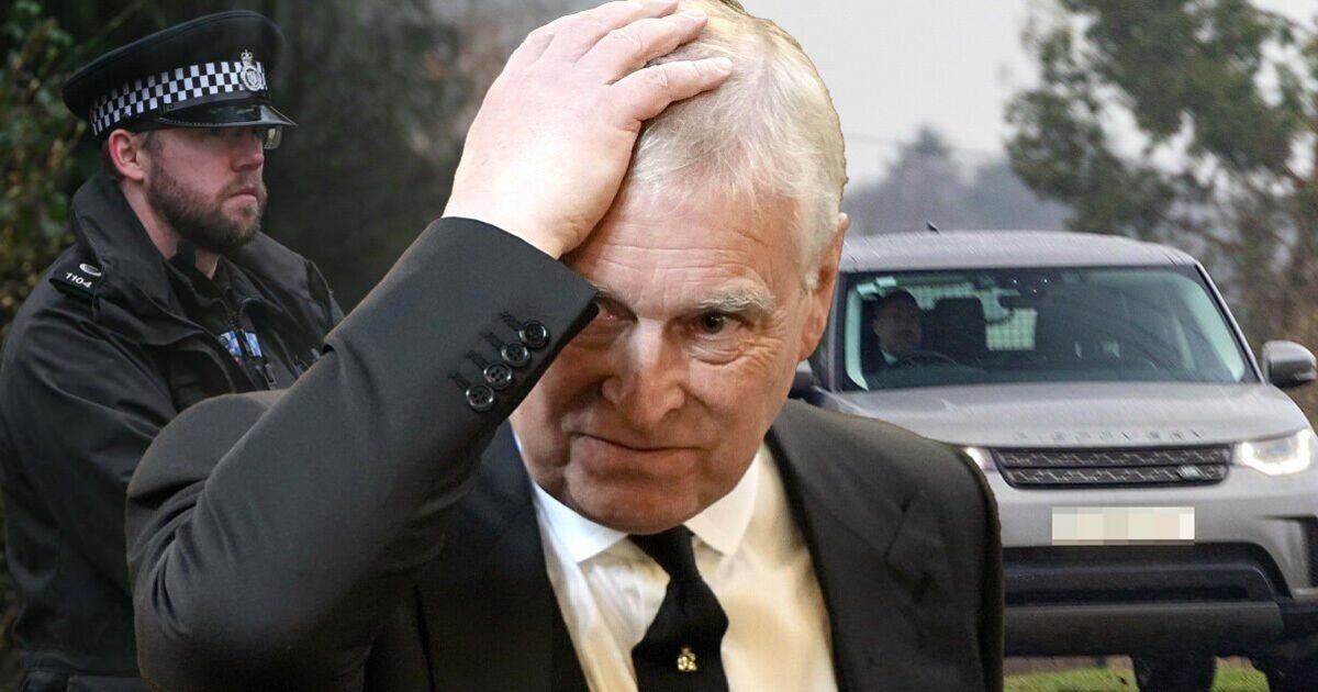 Na zdjęciu sześć nieoznakowanych pojazdów policyjnych przybyło wczoraj wczesnym rankiem na posesję, w której Andrew tymczasowo mieszka po wygnaniu z Royal Lodge w Windsorze. Na posesję przybyło około ośmiu ubranych po cywilnemu funkcjonariuszy, a jeden z nich niósł policyjny laptop.