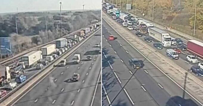Kierowcy na M25 W poniedziałek po południu w obliczu katastrofy. Cały ruch był tymczasowo utrzymywany z powodu wypadku na notorycznie zajętej autostradzie zgodnie z ruchem wskazówek zegara, tuż przed J30 A282 (Lakeside / Purfleet). Jak ruch drogowy Zbudowany, zator został zgłoszony do J29 (Romford).