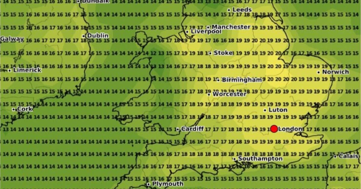 Według nowego Mapy pogodowe Przez WXCharts, wygenerowane w niedzielę (5 października), wiele części Anglii, szczególnie na południu, może cieszyć się bardzo przyjemnymi temperaturami do 20 ° C. W sumie imponujące 19 miasta W Wielkiej Brytanii zobaczy temperatury 19c lub więcej, od Canterbury na południowym wschodzie do Peterborough A nawet Chester na północ. Canterbury, historyczne miasto w Kent w południowo -wschodniej Anglii, najbardziej znane ze swojej oszałamiającej katedry, będzie najbardziej wysuniętym na południe miastem, które cieszy się balsamymi temperaturami, a WXCharts przewiduje przyjemne 19 ° C do 15:00 w poniedziałek. Dla tych, którzy nie mogą się doczekać dnia na plaży, ośrodku ośrodka Southend-on-Sea Będzie idealny wybór, ponieważ również będzie cieszył się temperaturą 19 cami po południu.