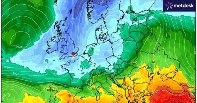 Chodle nowość pogoda Wykresy ujawniają, że Wielka Brytania wkrótce stoi w obliczu lodowatego, niebieskiego głębokiego zamrożenia -z częściami Wielkiej Brytanii, która ma zanurzyć się w podrzędnym -1C. A mapa cieplna dla Europy pokazuje, że podczas gdy południowe części kontynentu są bursztynowe dla połowy Autautu, Wielka Brytania I Skandynawia rażąco wyróżnia się jako zimowy ciemnoniebieski.