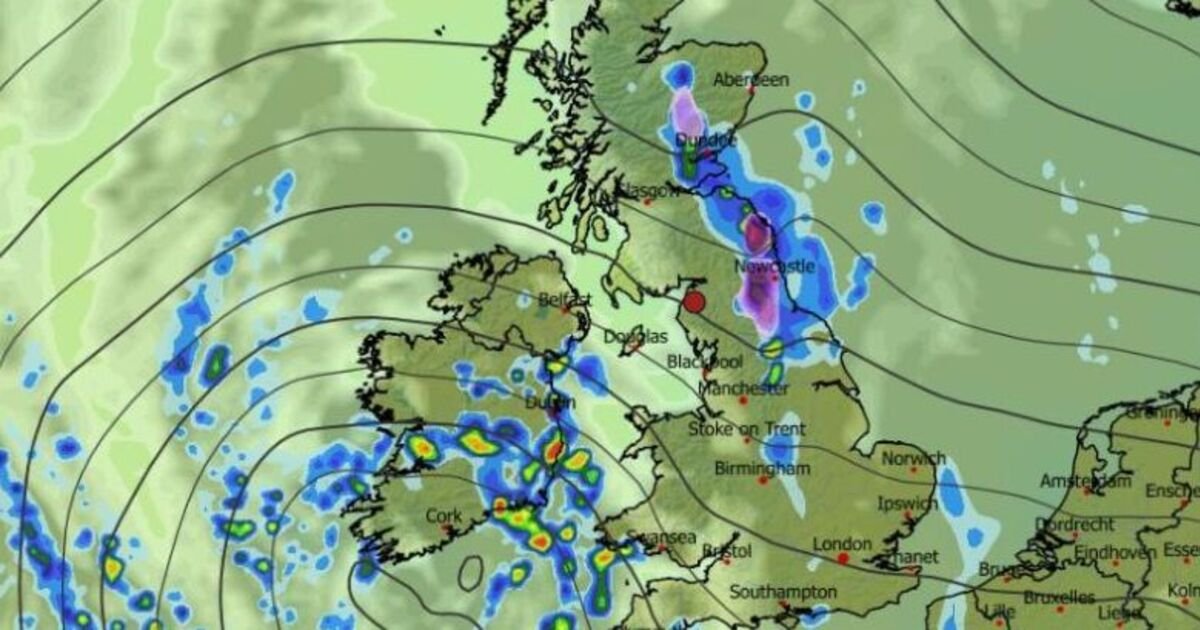 Mapy pogody prognozują dobrze warunki zimowe aby wkrótce uderzyć w Wielką Brytanię. Według prognoz WXCharts, opady śniegu Przewiduje się, że w miarę zbliżania się zimnej pory roku dla kraju będzie rozciągający się od Yorkshire po Szkocję. Mapa pokazuje obszary w kolorze fioletowym i niebieskim, wskazując odpowiednio śnieg i deszcz w Midlands, północnej Anglii i Szkocji, przy czym warunki te mają największy wpływ na północne części.