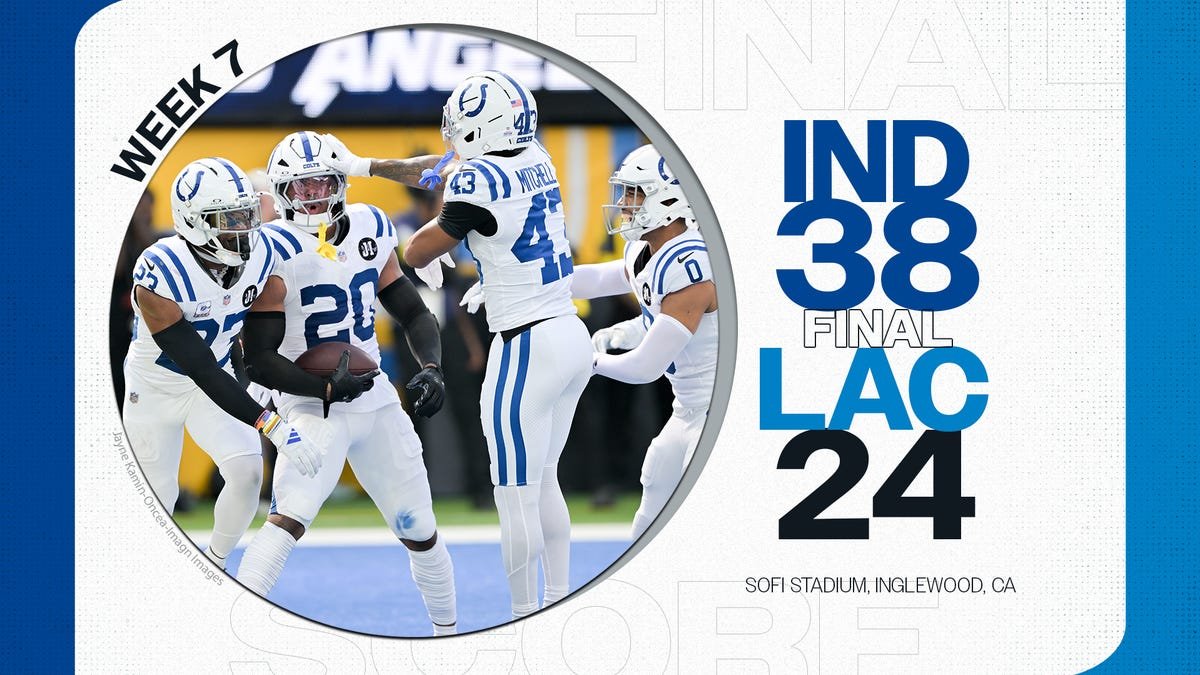 The Colty z Indianapolis mają teraz bilans 6-1 po zwycięstwie 38-24 w 7. tygodniu nad Los Angeles Chargers i wygrali trzeci mecz z rzędu.