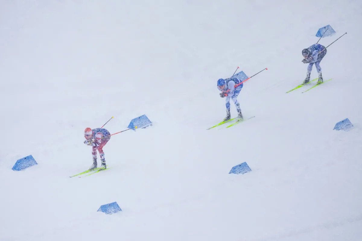 Finlandia zdobyła srebro, a Austria sięgnęła po brąz w dniu, gdy śnieżyca utrudniała dwuosobową sztafetę narciarstwa biegowego na 15 km.
