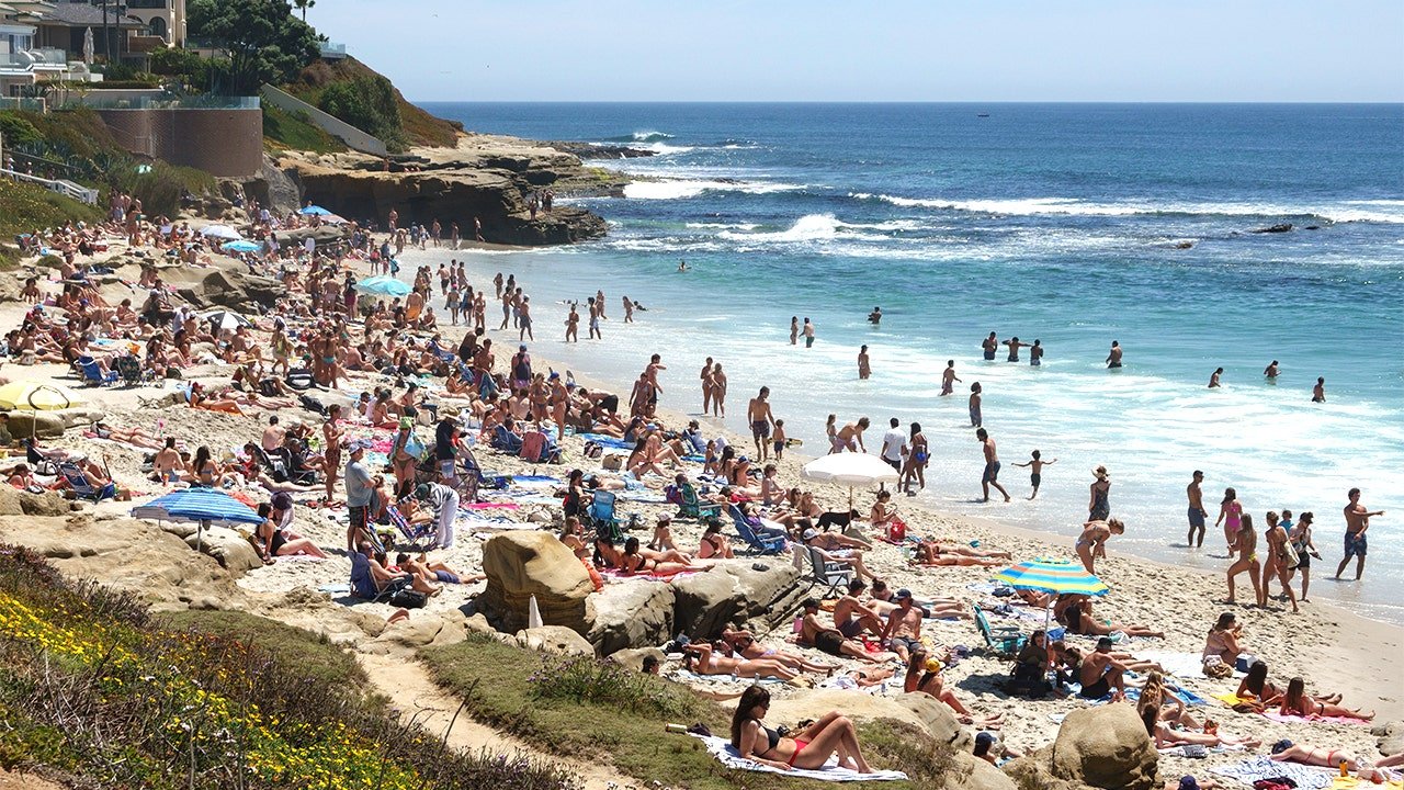 Ludzie gromadzą się na plaży Windansea wzdłuż wybrzeża La Jolla, 10 maja 2025 r. w San Diego w Kalifornii. Straż Przybrzeżna atakuje handlarzy narkotyków, którzy wysyłają narkotyki w stronę amerykańskich wybrzeży. (Kevin Carter/Getty Images)